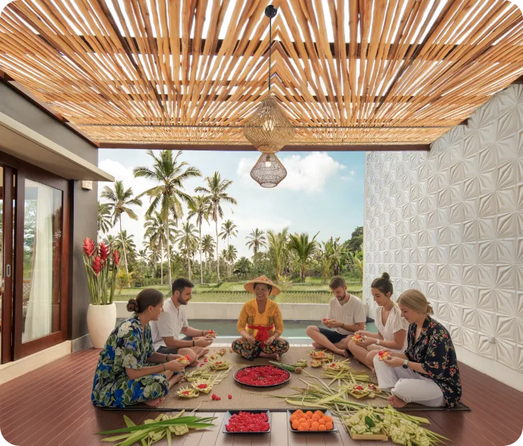 Canang-making mini workshop or Balinese dancing class with villagers