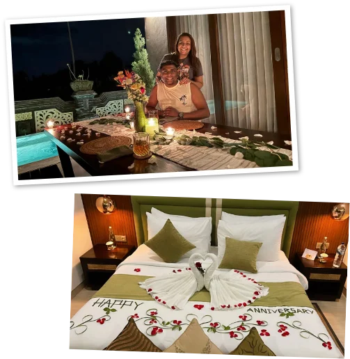 Enjoy an intimate candlelit dinner in your villa, thoughtfully prepared for two.