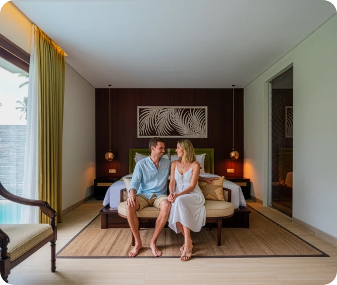 A serene hideaway for two, where Balinese charm meets comfort and luxury.