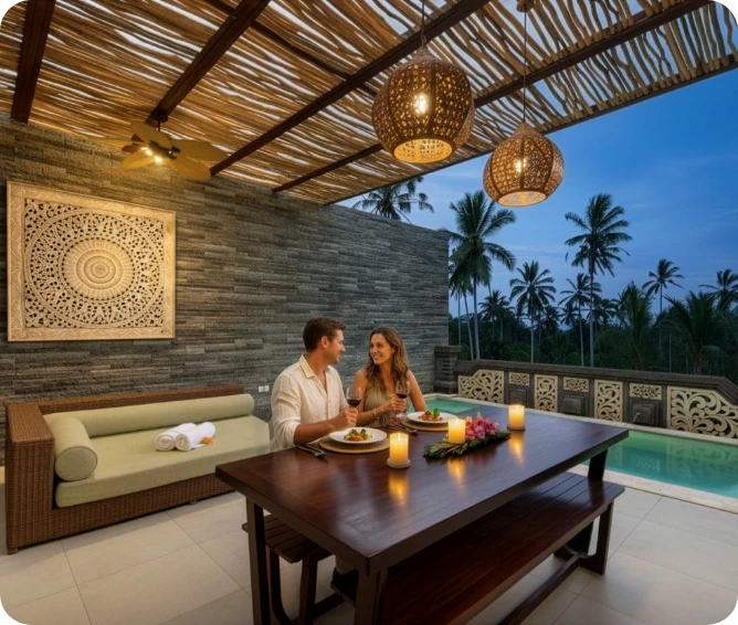3-Course romantic dinner with a choice of cocktails, served privately in your villa